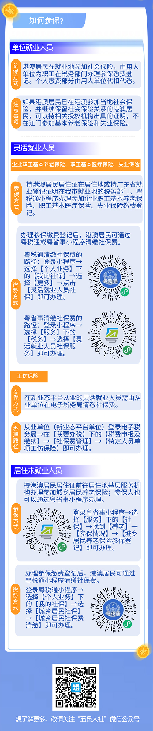 一圖讀懂港澳人員在江門參加社會保險政策(參保繳費篇)
