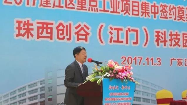蓬江區(qū)區(qū)委常委朱金治先生致辭,他表示,珠西創(chuàng)谷(江門(mén))科技園作為全區(qū)“五大人才創(chuàng)新創(chuàng)業(yè)平臺(tái)”之一,要緊抓粵港澳大灣區(qū)發(fā)展的機(jī)遇,攜手區(qū)內(nèi)外優(yōu)勢(shì)資源,為“小微雙創(chuàng)”提供更加廣闊的發(fā)展空間。