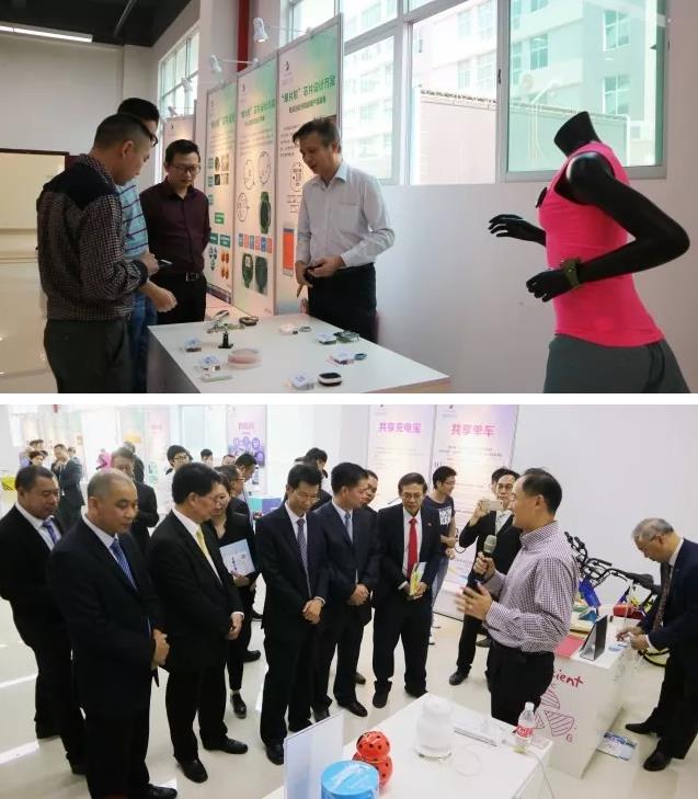 領(lǐng)導(dǎo)嘉賓和企業(yè)代表等參觀(guān)園區(qū)科技展廳,